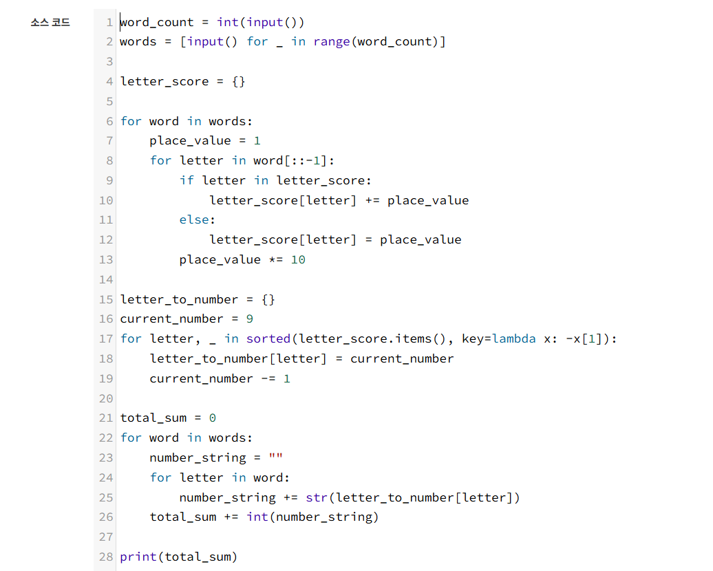 1) 문자 인식1. 각 케이스마다 인식된 문자 수와 전체 문자 수를 0으로 초기화한 후 줄 단위로 입력을 받는다2. 입력된 줄이 빈 줄이면 해당 케이스의 입력을 종료하고 다음 케이스로 넘어간다3. 줄에 있는 문자를 하나씩 확인하며 ‘#’이면 인식 실패로 전체 문자 수만 증가시키고 이외에는 전체 문자 수와 인식된 문자 수를 모두 증가시킨다4. 모든 줄을 처리한 뒤에는 인식률을 (R / A) × 100으로 계산하고 소수 둘째 자리에서 반올림한다5. 그 결과가 정수라면 정수로 변환하여 소수점 없이 출력한다6. 마지막으로 “Efficiency ratio is X%.” 형태로 결과를 출력한다 2) 전화번호 목록1. 테스트 케이스 개수를 입력받는다.2. 각 케이스마다 전화번호들을 리스트에 저장한다.3. 전화번호들을..